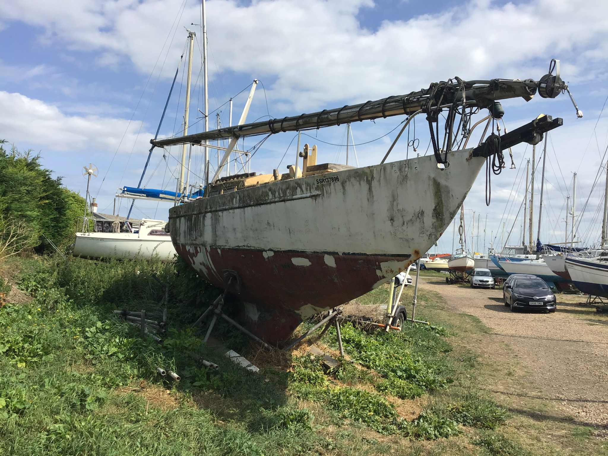 Trintel I (Vellela) for sale. Currently ashore in Kent, UK and requiring restoration. Hull number and build date unknown.